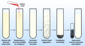 That proteins are natural biopolymers of amino acids has been known for ages. The partially charged ‘peptide’ linkages linkages (-CO-NH-) and abundant free –NH2 and –COOH groups on the polymeric chains impart an interesting property to a class of proteins: they dissolve in water under alkaline conditions (pH > 7) and separate out (precipitate out) when the conditions turns acidic (pH < 7). The dissolution happens because of differential ionization of –COOH and –NH2 groups which make the polymeric chain charged or spot ionized. These get surrounded by polar water molecules (i.e. get hydrated) and this is aided by the natural repulsion between those charges.
